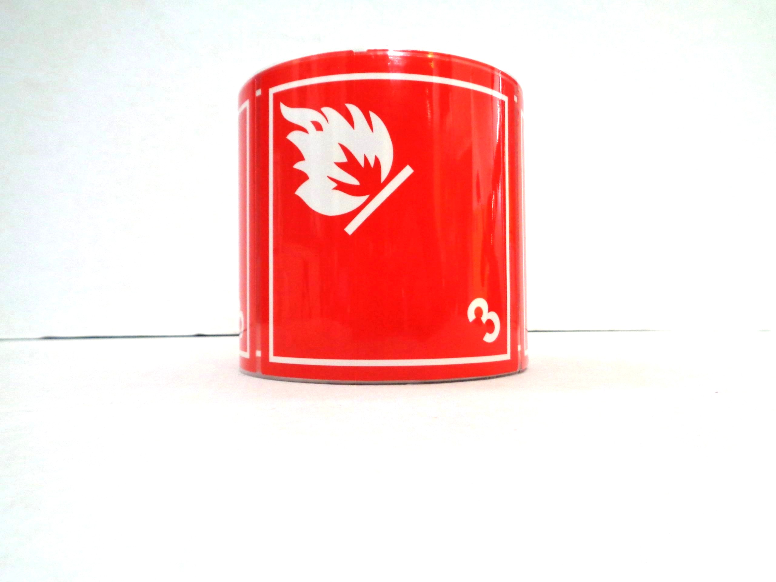 Rollo de 1000 etiquetas de clase 3 para líquidos inflamables con medidas de 10×10 cm. Cumple con los requermientos (IATA/IMO/49 CFR, SICT) . Para piezas sueltas consulte a nuestros asesores comerciales.