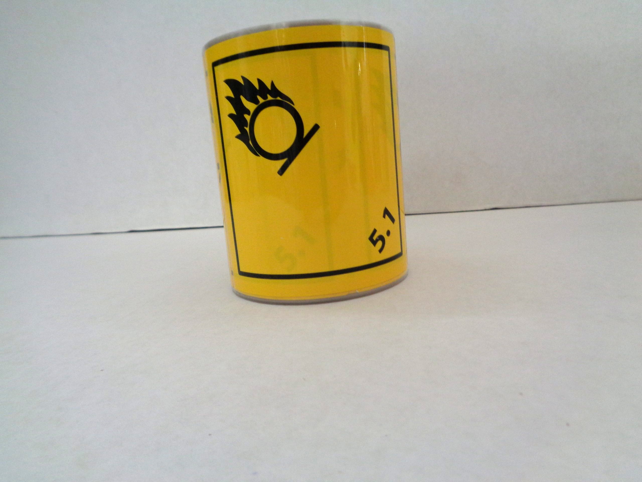 Rollo de etiquetas de la División 5.1 indicado para sustancias sustancias comburentes (oxidizer)